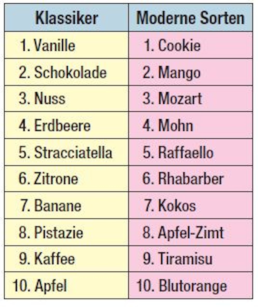 Eine aktuelle Umfrage der Wirtschaftskammer Österreich zeigt: Vanille bleibt die klassische Lieblingseissorte der Österreich, gefolgt von Schoko und Nuss. Bei den modernen Sorten ist Cookie Spitzenreiter.