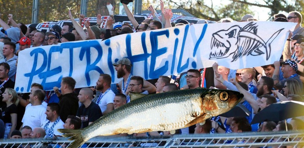 Unappetitlicher Auftritt der Fans von Hansa Rostock! Im Gastspiel bei Carl Zeiss Jena flogen die Fische von den Rängen – und ein Lied gab es auch dazu.