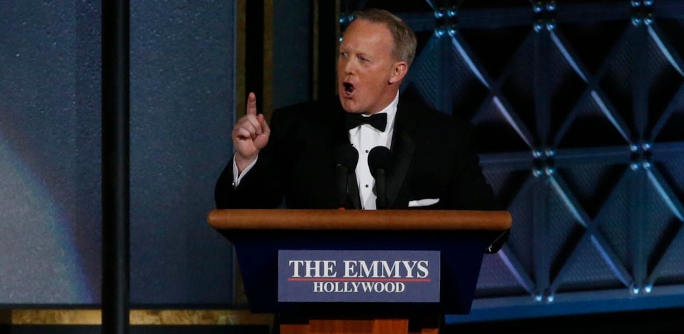 Bei der Emmy-Verleihung von Sonntag auf Montag fiel den TV-Stars im Publikum die Kinnlade runter als Spicer als Überraschungsgast auftauchte. Der halbe Cast von "Saturday Night Life" saß im Zuschauerraum. Die TV-Sendung, die ebenfalls mehrere Emmys abstaubte, hat seinen Aufschwung allein der Verarschung von Trump und seinen Mitarbeitern zu verdanken.