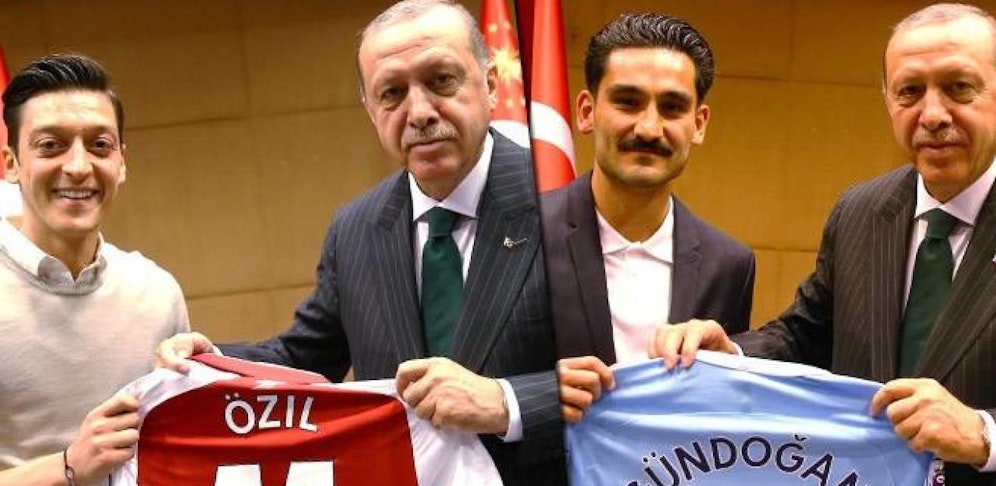 Özil überreichte Erdogan ein Trikot seines Vereins Arsenal. Tosun, der im vergangenen Januar von Everton verpflichtet worden war, ließ sich ebenso wenig lumpen. Und auch von Gündogan, der beim englischen Meister Manchester City unter Vertrag steht, erhielt Erdogan ein Trikot. Die Aufschrift "Mit Respekt für meinen Präsidenten" über der Signatur dürfte dem seit August 2014 mit harter Hand regierenden Präsidenten Freude bereitet haben.