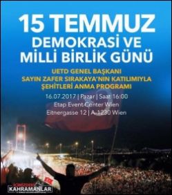 "Es werden keine hochrangigen Politiker aus der Türkei zu unserer Feier nach Liesing kommen", betonte Ramazan Akta, Sprecher der "Union Europäisch-Türkischer Demokraten" (UETD) gegenüber "Heute". Akta dementierte auch Medienberichte, wonach Hamza Da, Vizepräsident der türkischen Regierungspartei AKP, am kommenden Sonntag bei der Gedenkveranstaltung anlässlich des Putschversuches in der Türkei auftreten werde.