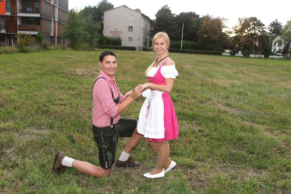 Bei der Bombenstimmung auf der Wiener Wiesn steigen viele auf die Bänke - doch Florian (27) ging auf die Knie: Der ÖAMTC-Mitarbeiter machte seiner Sandra (26) in der "Heute"-Loge einen Heiratsantrag!