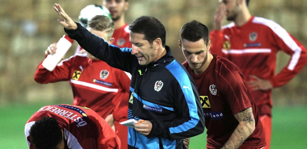 Am Feld gibt er zunächst den stillen Beobachter, verfolgt an der Seite seiner Co-Trainer Imre Szabics und Thomas Kristl das von Gerhard Zallinger geleitete Aufwärmprogramm. Auch Sportdirektor Peter Schöttel lässt sich die "Show" nicht entgehen. Schade für Zaungäste: Das kultige "Einklatschen" ist Geschichte. Fitness-Guru Roger Spry ist nicht mehr Teil des rot-weiß-roten Betreuerstabs.