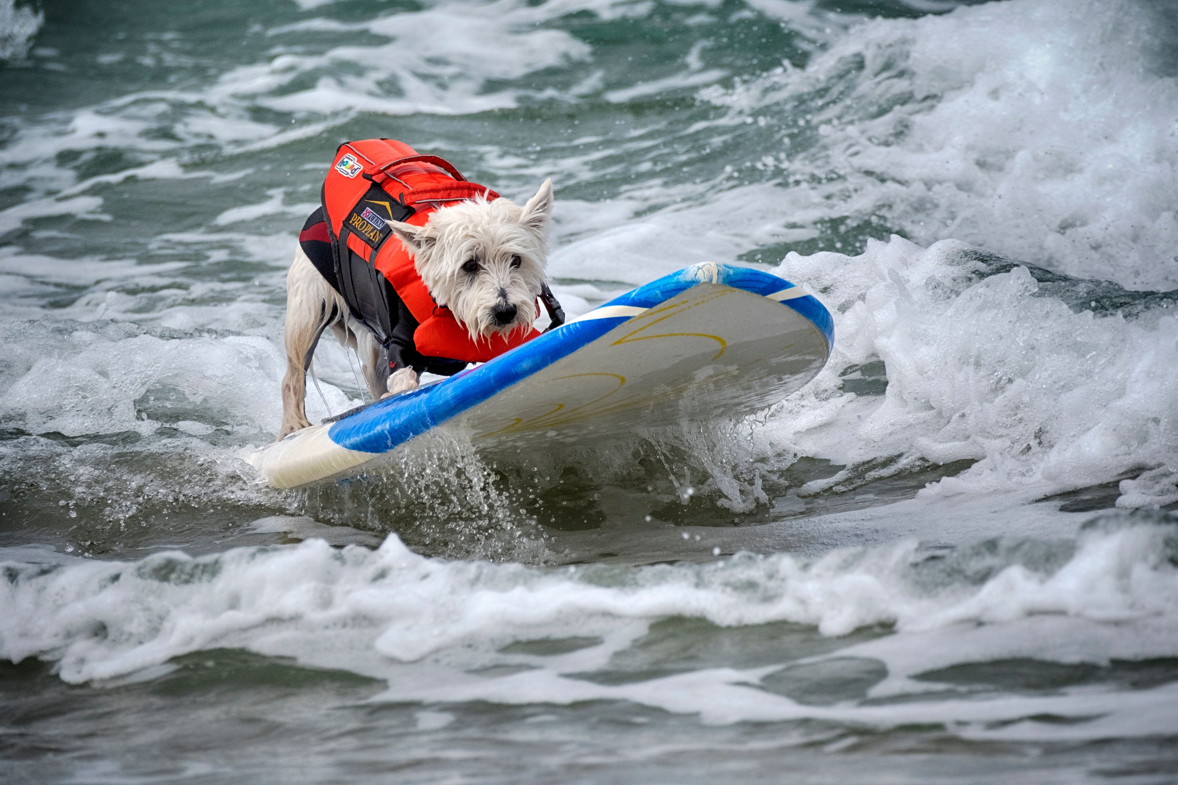 Innerhalb der letzten Jahre hat sich diese lustige Verrücktheit schon richtig etabliert und es werden bereits Weltmeisterschaften abgehalten. In ihren Größen unterteilt, wird der Hund aufs Surfboard gesetzt und vom Besitzer in die Wellen gestupst – danach ist der Hund auf sich allein gestellt und muss am Brett wieder ans Ufer kommen.