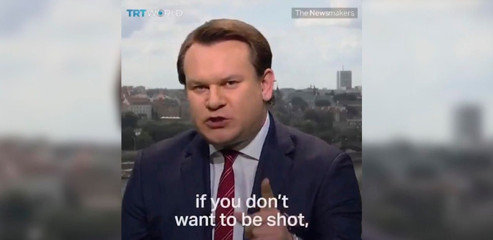 Die Türkei ließ Zehntausende Flüchtlinge bis zur griechischen Grenze vor. Der polnische Europa-Abgeordnete Dominik Tarczynski warnt via Twitter-Video: "Kommt nicht an unsere Grenzen."
