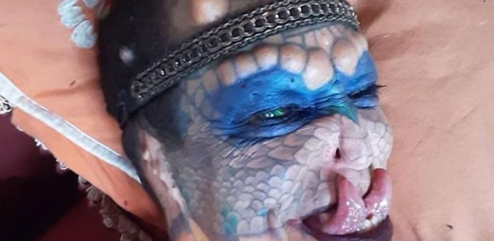 Nach eigenen Angaben ist Eva Tiamat Medusa die am meisten Körper-modifizierte Person des Planeten. Die heute 59-Jährige unterzog sich dazu unzähligen Operationen, die Kosten gehen in den sechsstelligen Bereich. Nase, Ohren und Zähne ließ sich die Transgender-Frau entfernen, um zu einem Drachen zu werden. Dazu kommen zahllose Tätowierungen und Implantate.