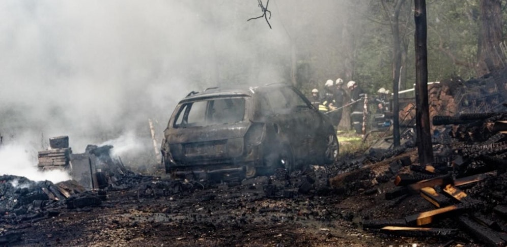 Die Feuerwehrmänner hatten neben der schwierigen Lage der Hütte mitten im Wald mit der Wasserversorgung zu kämpfen, mussten lange Leitungen legen. Schließlich konnten die Florianis den Brand löschen, die Gartenhütte und ein Fahrzeug wurden jedoch komplett vernichtet.