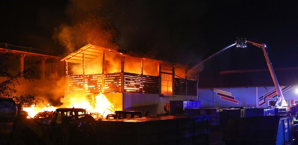Aus unbekannter Ursache geriet die Halle eines Gewerbebetriebs in Raab im Bezirk Schärding in der Nacht auf Mittwoch in Brand. Zwölf Feuerwehren mussten ausrücken.
