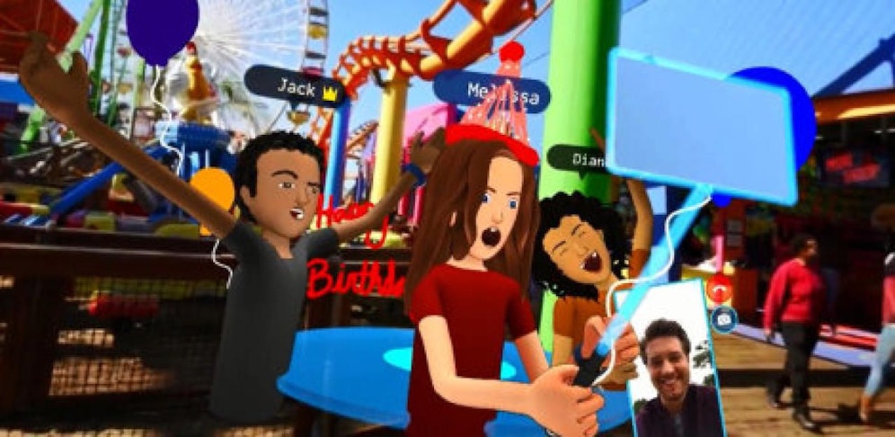 Mit Hilfe von künstlicher Intelligenz wird ein Avatar aufgrund von Profilbildern generiert. Anschließend kann man sich mit bis zu drei weiteren Freunden unterhalten, die virtuellen Welten erkunden und sogar Selfies machen. In die künstlichen Räume können sich per Videotelefonie auch weitere Freunde einklinken, die als flaches Videobild integriert werden.