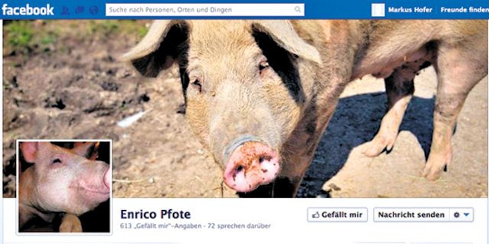 Wirklich zum Grunzen! Mit seinem Online-Tagebuch auf Facebook ist "Enrico Pfote" von der Pfotenhilfe Lochen (OÖ) das wohl bekannteste Borstenvieh des Landes. Jetzt feiert der 100 Kilogramm schwere Eber das einjährige Facebook-Jubiläum und seine aktuell 643 Fans aus 20 Ländern verfolgen jeden Online-Grunzer mit.