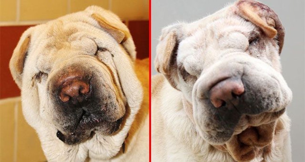Die Falten überdeckten nicht nur zusehens seine Augen und Ohren, er litt auch unter ständigen Infektionen in seinen Runzeln. Die San Antonio Humane Society, die sich um Tiere in Not kümmert, half dem armen Vierbeiner.