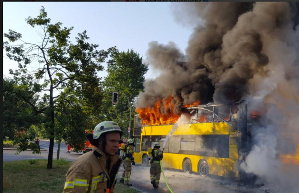Donnerstagmorgen stand ein Linienbus in Berlin in Flammen – die Feuerwehr kämpfte 20 Minuten lang gegen das Feuer, der Bus brannte vollständig aus.