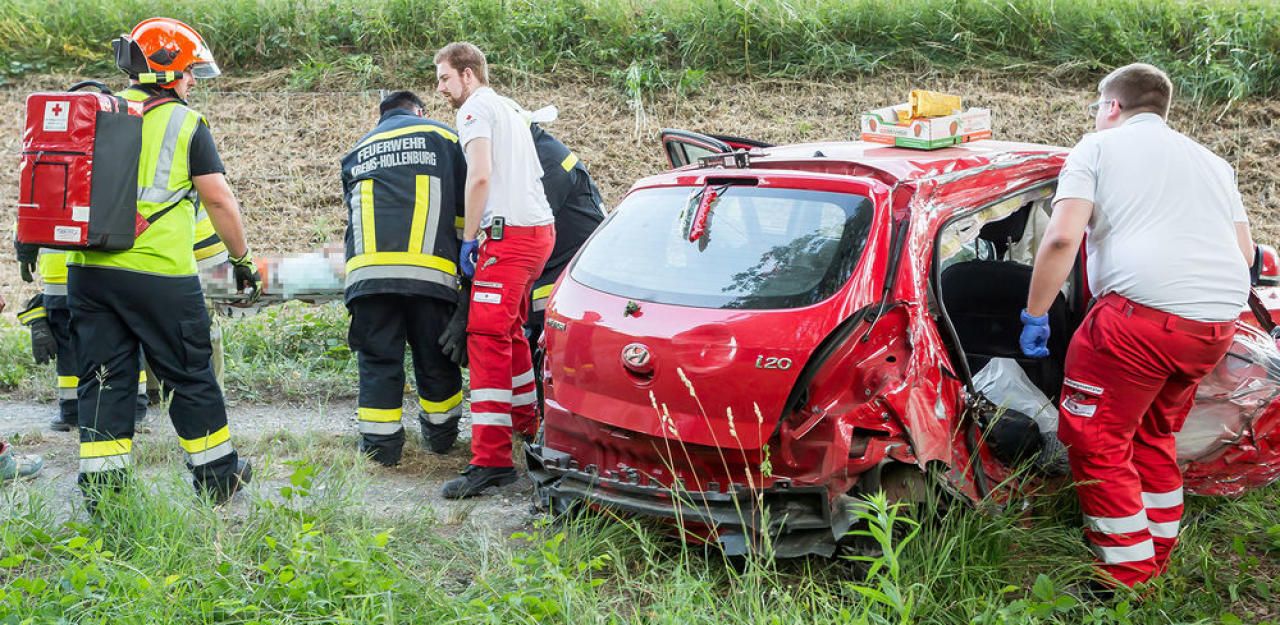 Glück im Unglück hatte am Dienstagabend eine Autolenkerin in Hollenburg (Krems). Auf der B37a kam sie von der Straße ab und rauschte die steile Böschung hinunter, auf einem Begleitweg überschlug sich ihr Wagen und kam erst hundert Meter weiter zum Stillstand – die Frau überlebte den wilden Unfall.