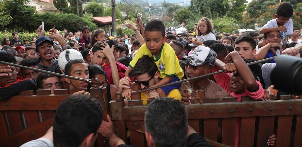 Ganz Brasilien wollte Neymar auf die Beine schauen. Das einzige öffentliche Training der Selecao im Heimatland endete am Freitag im puren Chaos. Vor dem Trainingszentrum in Granja Comary warteten über 600 Fans auf den Einlass. Doch der brasilianische Verband öffnete nur für rund 200 Zuschauern die Tore. Die gut 400 Fans, die nicht reingelassen wurden, sorgten in der Folge für einen Polizeieinsatz.