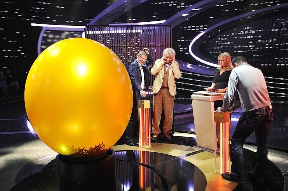 Ein gelber Ballon hätte zum Platzen gebracht werden sollen, in den - bei jeder richtigen Antwort - Luft gepumpt wurde. Doch er wollte einfach nicht kaputt gehen, egal wie groß er bereits aufgeblasen war. Die Kontrahenten antworteten fleißig auf jede Frage, und am Ende lebte der Ballon immer noch. Moderatorin Barbara Schöneberger gingen schließlich die Fragen aus.