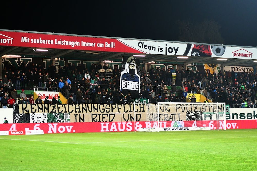 Beim 2:1-Erfolg der SV Ried enthüllte der harte Kern der Innviertler ein großes Transparent, auf dem eine Kennzeichnungspflicht von Polizisten gefordert wird. Die Fanklubs der österreichischen Vereine haben sich zusammen getan und eine gemeinsame Aussendung herausgegeben.