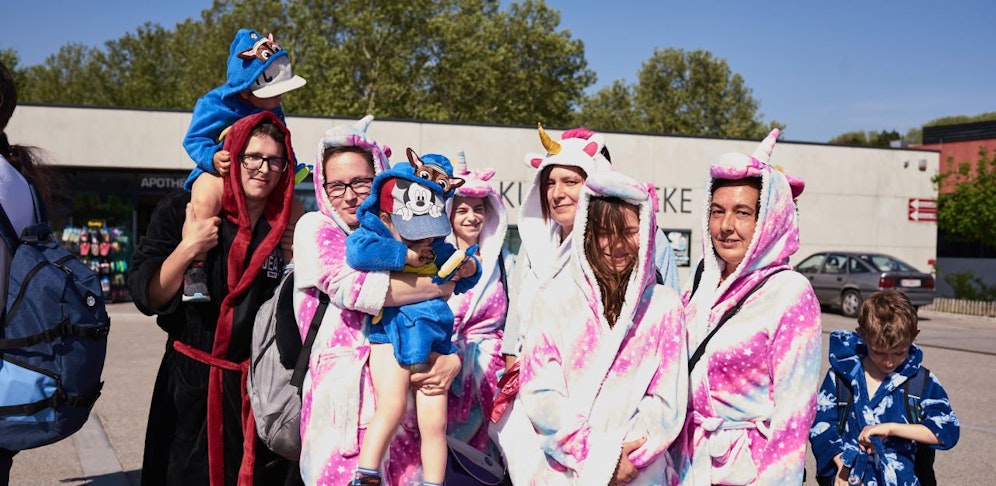 Zum zweiten Mal fand am 2. Mai 2019 der Wiener Bademanteltag in der Therme Wien statt. 895 Teilnehmer (27 Prozent mehr als im letzten Jahr) nützten die Chance auf einen kostenlosen Thermen-Aufenthalt. Ab 16 Uhr kamen alle, die im Bademantel vor dem Eingang standen, kostenlos in die Therme.