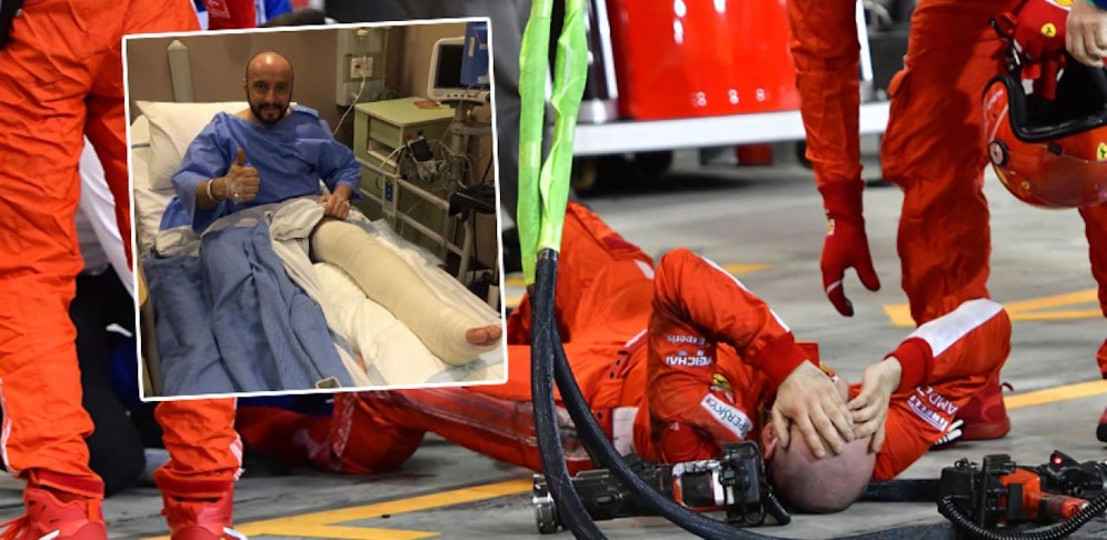 Es sind schreckliche Bilder, die sich in den Kopf einbrennen. Beim Grand Prix von Bahrain fährt Kimi Räikkönen beim Boxenstopp dem Ferrari-Mechaniker Francesco Cigarini unabsichtlich über den Fuß und bricht ihm Schien- und Wadenbein. Die Bilder des vor Schmerzen schreienden Italieners gehen um die Welt – jetzt meldet er sich nach einer Not-Operation aus dem Krankenhaus.