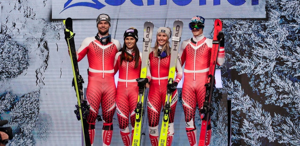 Im Europark in Salzburg hat der ÖSV die neue Wäsch' für die kommende Wintersaison präsentiert. In klassischen Rot-Weiß-Rot mit grauen Akzenten auf der Rückseite werden unsere Wintersportler auf Sieg-Jagd gehen. Auch ein zweiter Anzug ganz in Weiß wurde vorgestellt.