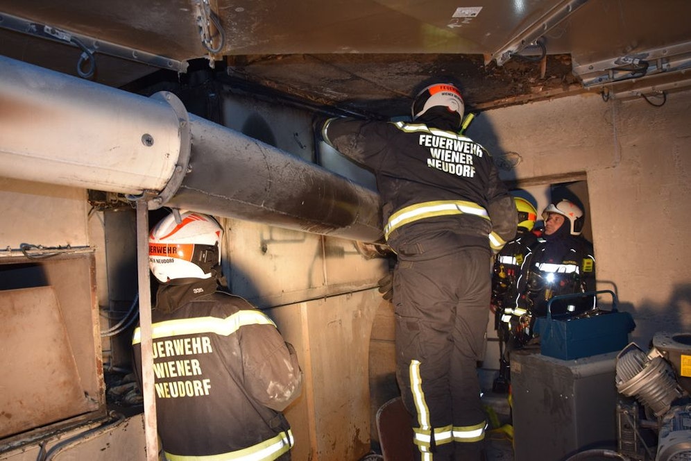 Die Feuerwehr Wr. Neudorf rückte mit 21 Mann aus. Mit einer Kübelspritze konnte der Kleinbrand im Keller rasch abgelöscht werden. Die vorbereitete C-Löschleitung musste durch den Atemschutztrupp nicht in Betrieb genommen werden.