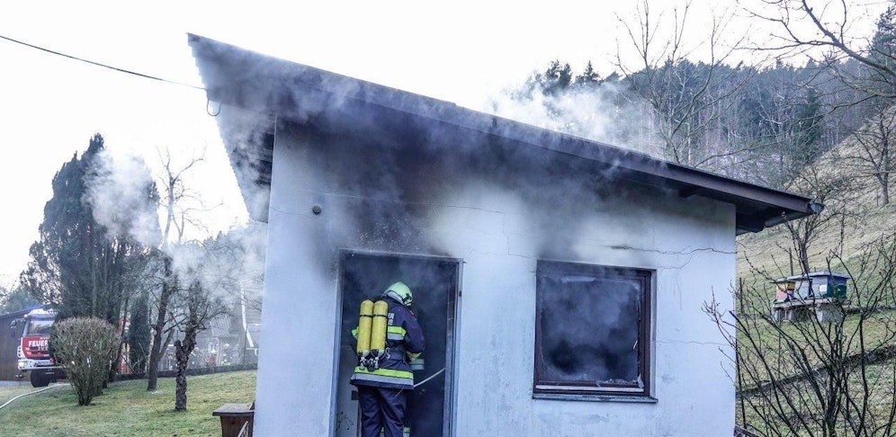 Am Sonntagnachmittag kam es in einem Heizhaus zu einem Brand. Durch die Hitze baute sich ein hoher Druck auf, der alle Wände einreißen ließ. Auch Fenster und Türen wurden aus den Mauern gerissen. Bereits beim Notruf wurde von lautem Knallen gesprochen.