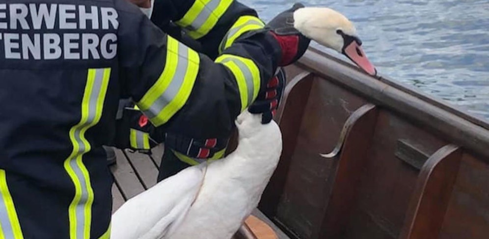 In Luftenberg hatte ein Schwan einen Angelhaken am Hals. Zudem hatte sich die Schnur um seine Beine und Flügel gewickelt. Die Feuerwehr konnte ihn rasch befreien.