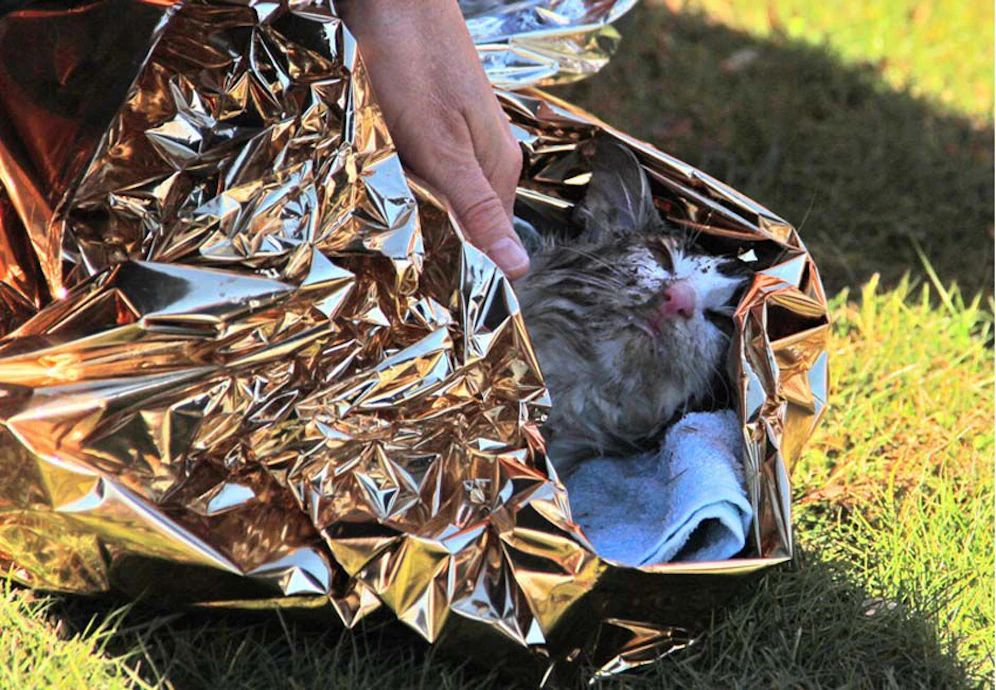 Nass und geschwächt wurde die Katze ihren Besitzern übergeben.