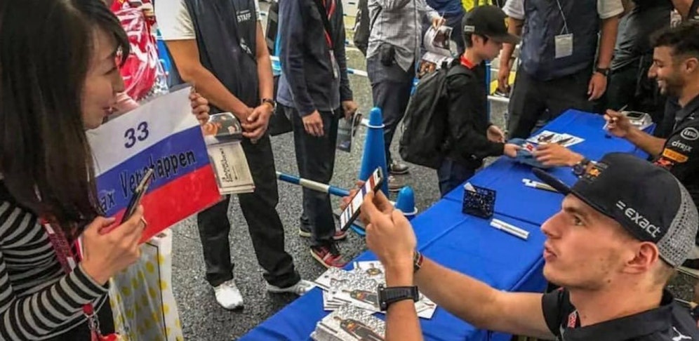 Max Verstappen geht am Sonntag im Grand Prix von Japan (ab 7:10 im Live-Ticker) als Dritter ins Rennen. Vor dem Qualifying gab es die obligatorische Autogrammstunde von Red Bull.