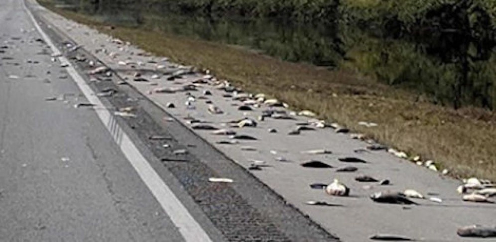 Dadurch, dass das Wasser nun auf Straßen zurückgeht, entstand ein kleines Phänomen: Auf den Straßen liegen nun hunderte tote Fische.