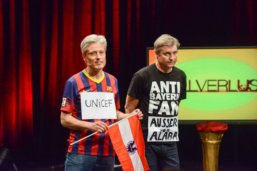 Zwei erwachsene Männer mit Grundsätzen und politischem Bewusstsein! Aber auch zwei Männer, die, sobald es um Fußball geht, diese Grundsätze in der Sekunde vergessen. Vereint in Rot-Weiß-Rot, getrennt in Grün und Violett. Anlässlich der Fußball-WM strahlt der ORF Alfred Dorfer und Florian Scheubas Kabarett aus.