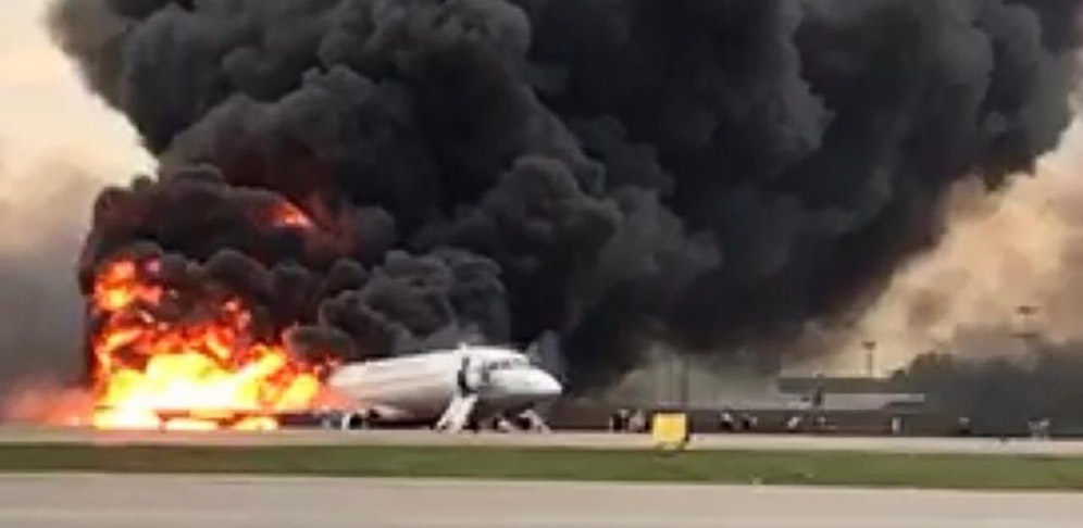 Eine Passagiermaschine hat auf Russlands größtem Flughafen kurz nach dem Start Feuer gefangen. Auf Bildern war zu sehen, wie das russische Flugzeug in Moskau in Flammen zur Landung ansetzte und von einer riesigen schwarzen Rauchwolke bedeckt war.