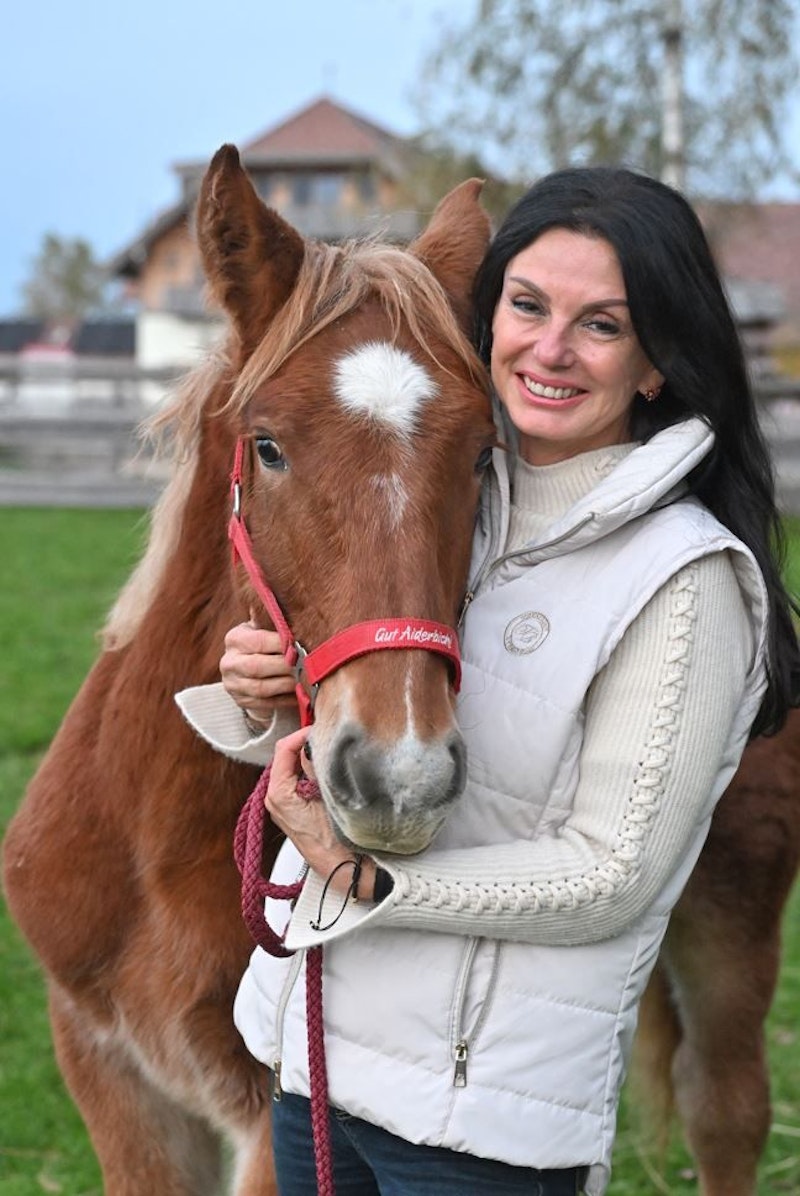 Die kleine Stute hat die dunkle Mähne von ihrer Mama "Anna-Carina" geerbt und wohl auch das Temperament, denn die junge Dame hält ihre Mutter jetzt schon auf Trab. "Zum Glück ist Anna-Carina ist eine sehr entspannte Pferde-Mama", so Gut Aiderbichl Chef-Tierpflegerin Lisa.