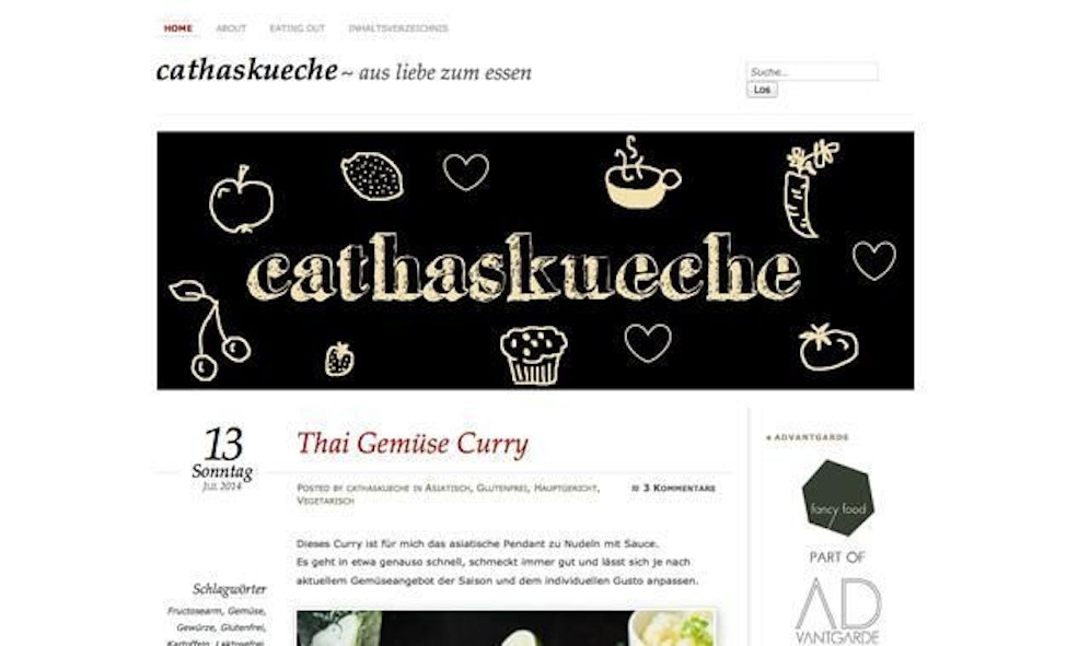 Vorspeisen, Hauptspeise, Nachspeisen, Aufstriche, Beilagen, Frühstück, vegetarische, asiatische und italienische Rezepte: Dies sind nur einige der vielen Kategorien, hinter denen sich großartige Rezeptideen zum Nachkochen verstecken. Catha, die Bloggerin hinter "cathaskueche", liebt Essen und das zeigt sie wahrlich gekonnt auf ihrer virtuellen Spielwiese. Mit genussvollen Fotos aus ihrer Küche gibt die Bloggerin einen köstlichen Einblick in ihr geschmackvolles Leben. Definitiv einen Klick wert!