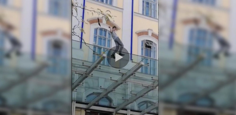 Der neue Clip wurde der „Heute"-Redaktion am Dienstag zugespielt und zeigt einen Jugendlichen, der am Glasdach über den Eingang zur Schule tanzt.