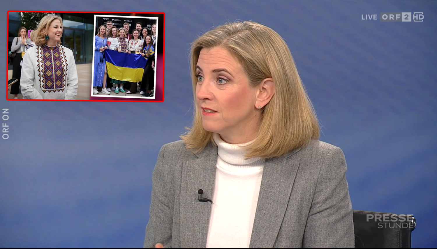Meinl-Reisinger bezog zudem Stellung zu ihren Fotos in der Ukraine-Tracht und stellte klar: Sie habe die traditionelle "Wyschywanka" von einer ukrainischen Delegation geschenkt bekommen – dem gleichen Modell, das Erzherzog Wilhelm Franz von Habsburg-Lothringen im Ersten Weltkrieg trug, als er in der Ukraine Truppen gegen die Sowjets befehligte. Für sie sei das Tragen der Tracht ein "Zeichen der Unterstützung" gewesen, kein "Verrat der Neutralität".