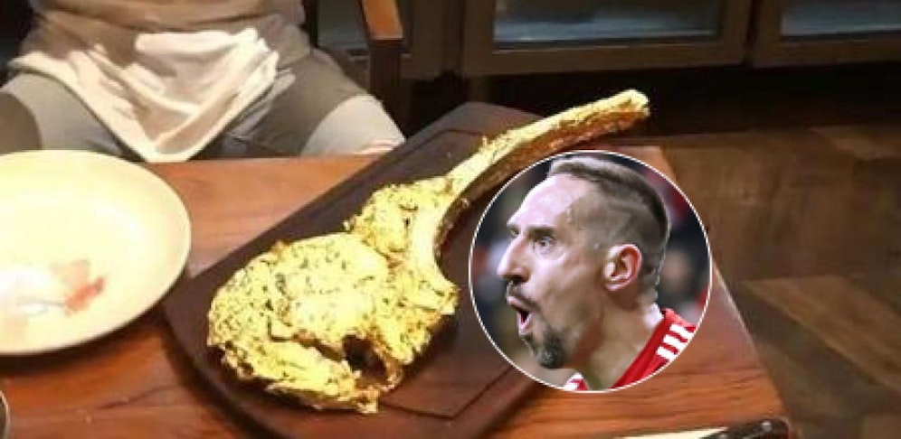Seit mehreren Tagen ist das goldene Steak von Franck Ribery in aller Munde. Der Bayern-Star stattete einem guten Freund einen kleinen Besuch ab und verputzte in dessen Lokal die Spezialität.