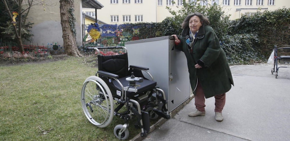 Denn: S.' Elektrorollstuhl passt nicht in den Aufzug und muss mühsam zusammengeklappt werden. Ist sie im Erdgeschoss angekommen, wartet die schlimmste Hürde auf sie – eine Treppe. Für die schwer kranke Pensionistin, die zu 90 Prozent Invalidin ist, sind das Anstrengungen, die sie alleine nicht bewältigen kann. Meistens hilft ihr Sohn aus.
