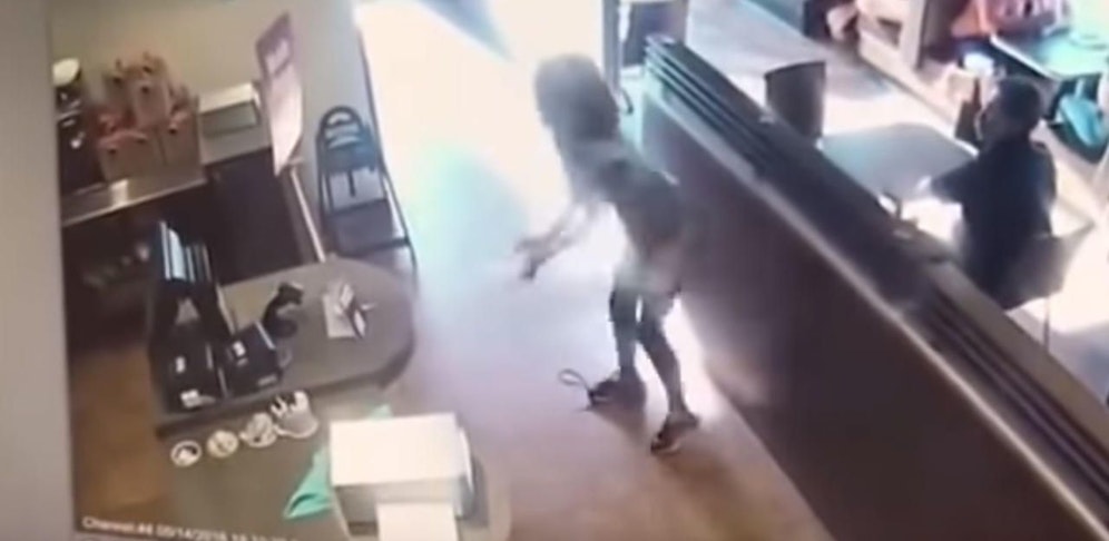 Eine Überwachungskamera zeigt, wie die streitbare Dame nach einem länger anhaltenden Wortgefecht ihre Hose nach unten zieht und ihr Geschäft vor der Theke verrichtet. Der Mitarbeiter, mit dem sie sich zuvor stritt, kann wenig dagegen tun und verschwindet in Richtung Telefon, wahrscheinlich um die Polizei zu verständigen.