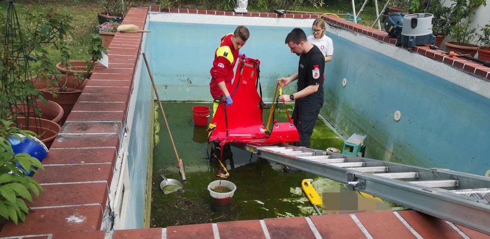 "Ein Stemmen aus dem 1,6 Meter tiefen Pool wäre zu gefährlich", berichtet Feuerwehr-Einsatzleiter Thomas Malecek.