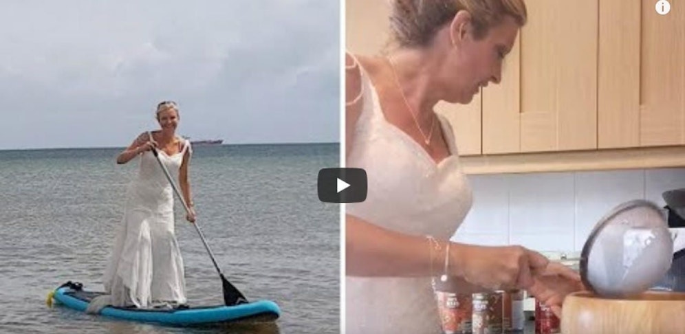 Dawn Winfield-Hunt lebt auf der Insel Wight in Großbritannien. Seit einem Monat ist sie verheiratet. Seit diesem Moment hat sie nicht aufgehört ihr Brautkleid bei jeder erdenklichen Gelegenheit zu tragen - sogar beim Putzen und Wasssersportaktivitäten.