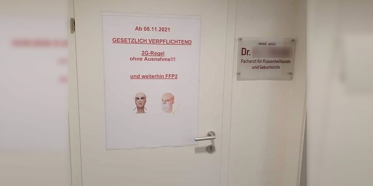 In der Steiermark setzt nun ein Frauenarzt rigorose Maßnahmen im Kampf gegen das Coronavirus. In seiner Ordination will er jetzt nur noch geimpfte oder genesene Patientinnen behandeln. Vor dem Eingang hängt ein entsprechender Info-Zettel: "Ab 8.11.2021, gesetzlich verpflichtend – 2G-Regel ohne Ausnahme und weiterhin FFP2".