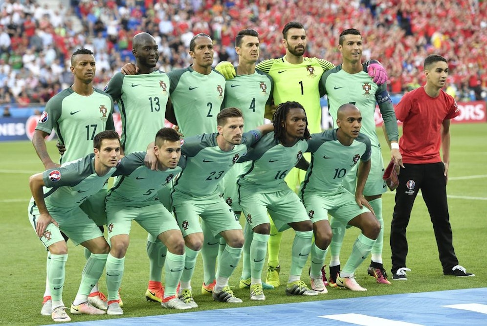 Noch vor dem Ankick beim sorgten die Kids aus dem Rahmenprogramm für Lacher im Stadion von Lyon. Zunächst wurde die Showeinlage brav erfüllt, danach schlichen sich aber zwei Jungs in Richtung Cristiano Ronaldo. Einer ergatterte ein Selfie mit CR7, der andere stellte sich sogar beim Mannschaftsfoto neben den großen Superstar.