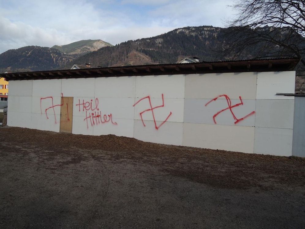 Drei bis zu zwei Meter große Hakenkreuze sowie der Wortlaut "Heil Hittler" wurde aufgessprüht. Die Täterschaft verwendete dazu einen roten Lackspray. Zeugenhinweise erden an die Polizeiinspektion Bludenz erbeten.