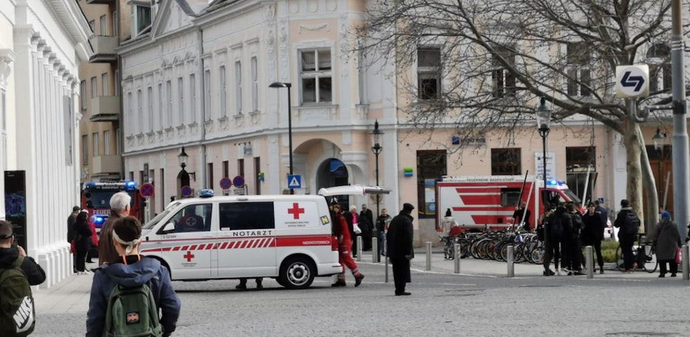 Rettung, Polizei und Feuerwehr am Dienstagmittag mitten im Herzen Badens: In der Hypobank am Josefsplatz soll es laut ersten Infos zu einem Gasgebrechen gekommen sein.