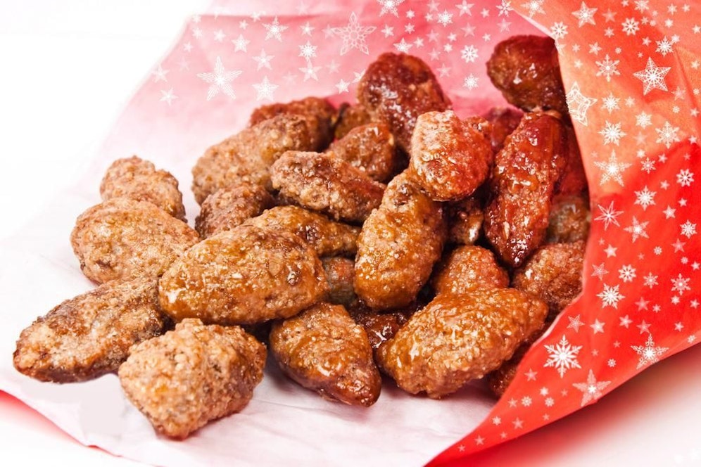 Wasser, Zucker, Vanillezucker und Zimt in der Pfanne aufkochen lassen. Mandeln dazu geben und rühren bis die Flüssigkeit verdampft ist und die Mandeln alle überzogen sind.