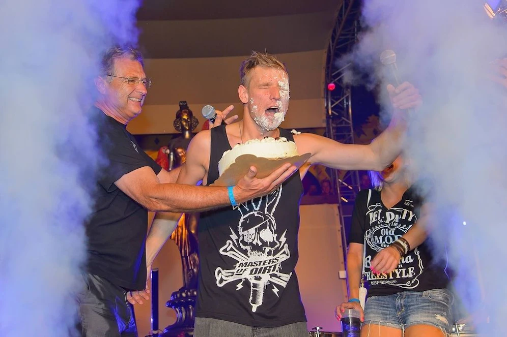 Der nahm’s aber mit viel Humor, und nach einem T-Shirt-Wechsel ging's gleich weiter mit der Party. Lässig!