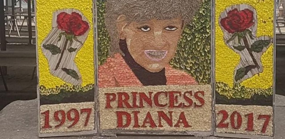 Fotos des Gedenkbildes, das in der englischen Tradition des "well dressing" aus Blumenblättern erstellt worden ist, wurde am Dienstag auf der offiziellen Seite des Chesterfield Borough Council gezeigt.