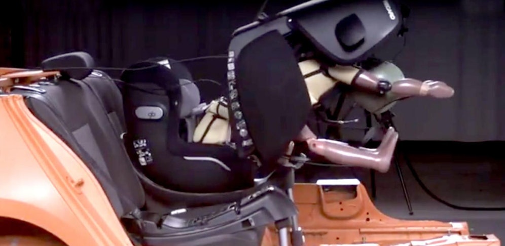 Bei dieser neuerlichen Überprüfung spielten sich im Testlabor dramatische Szenen ab. Der Kindersitz "Recaro Optia" (330 Euro, mit "SmartClick Base") wurde beim simulierten Frontalcrash aus seiner Verankerung katapultiert und segelte quer durch das Testlabor, wie die Videoaufnahmen zeigen. Die Sitzschale hatte sich von der sogenannten Isofix-Station gelöst.