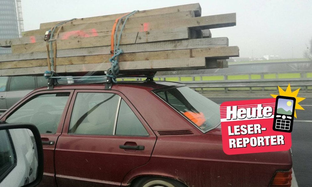 Bloß mit Seilen und Gurten gesichert, transportierte ein Wiener am Donnerstag jede Menge Holz auf dem Dachträger seines Mercedes. Bei erlaubten 80 km/h auf der Tangente, Österreichs meist befahrener Straße, alles andere als ein sicheres Unterfangen.