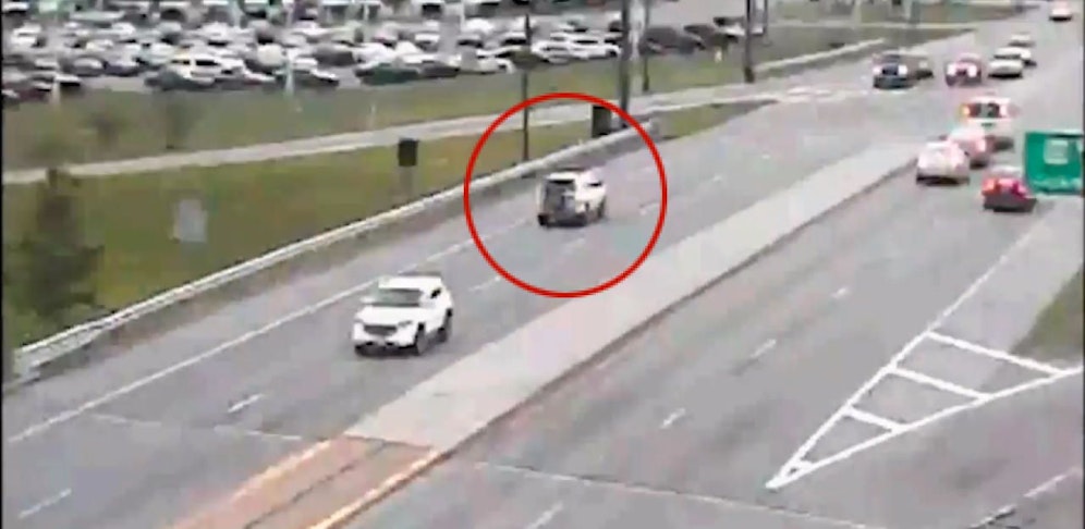 Das Verkehrsministerium von Ohio (ODOT) veröffentlichte Aufnahmen einer Überwachungskamera, die die halsbrecherische Aktion verfolgte. Der unbekannte Fahrzeuglenker steuerte seinen weißen SUV sogar über zwei Kreuzungen mit Ampelschaltung bevor er schließlich auf den nahen Parkplatz eines Shopping Centers auffuhr.